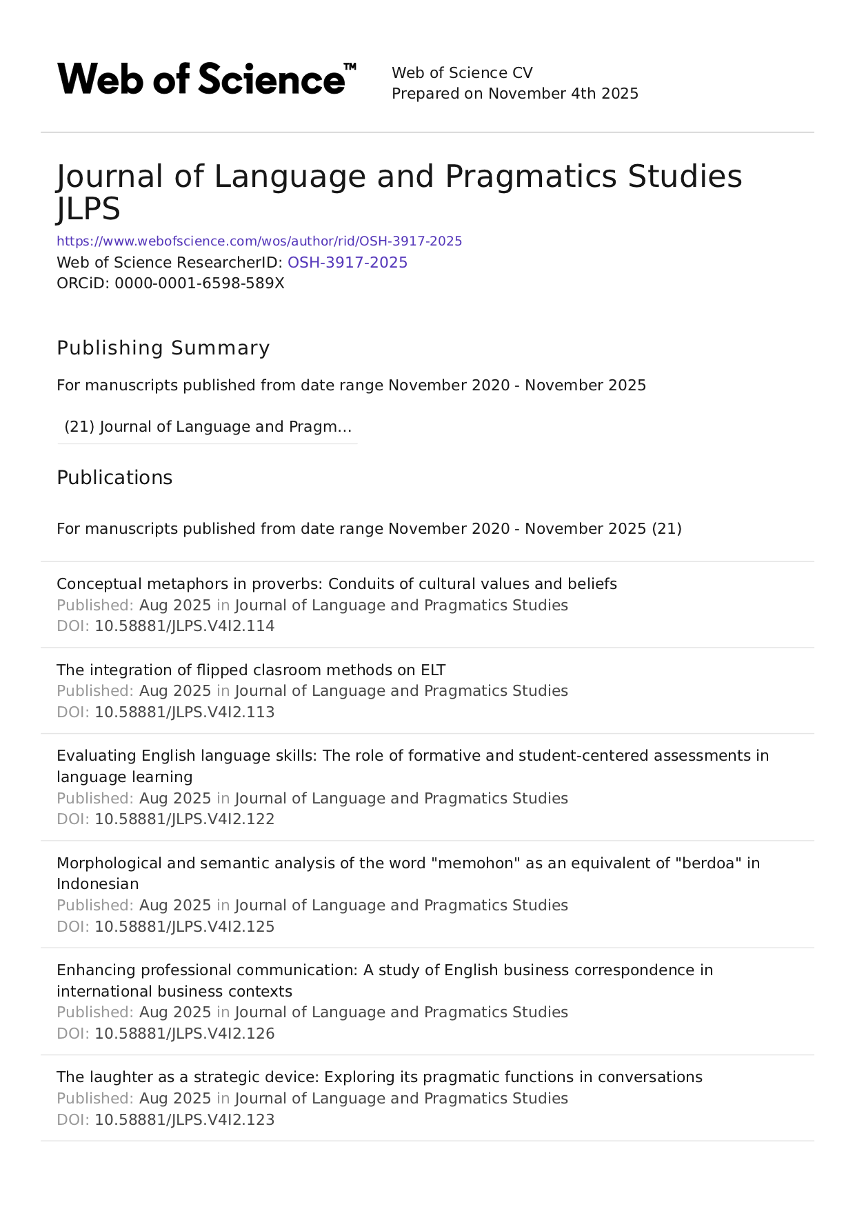 Journal of Language and Pragmatics Studies (JLPS) covers, refers to, and/or under the fields of sciences: